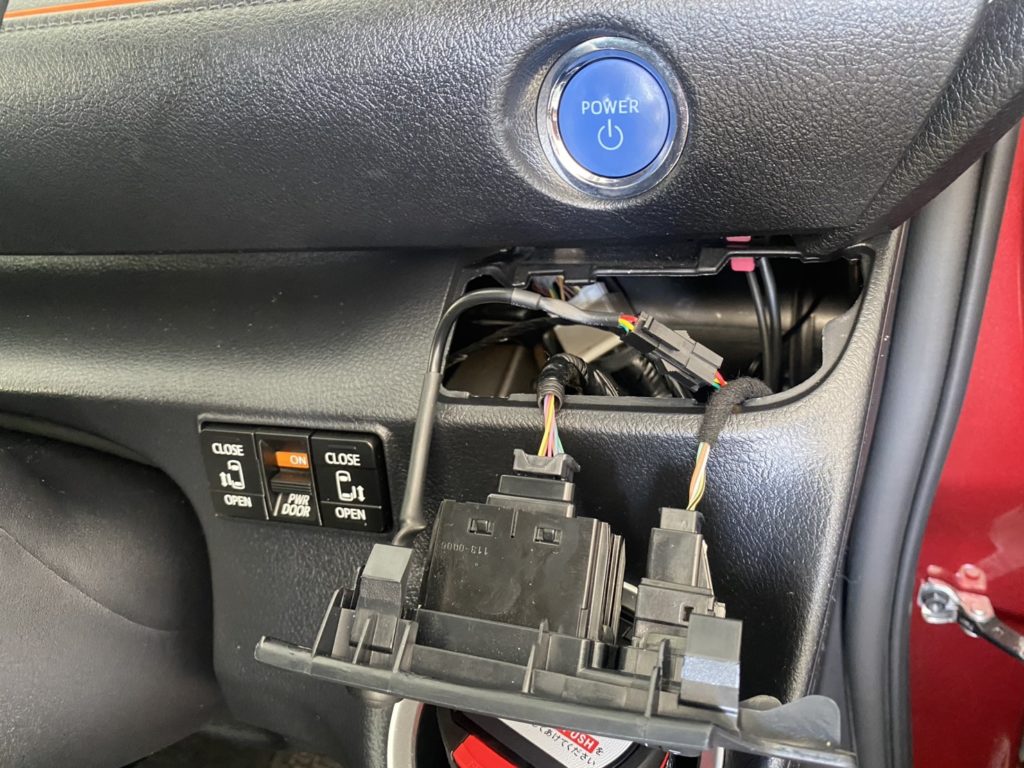 スイッチはプッシュスタートスイッチ下のスイッチパネルに穴あけ加工をして取付。