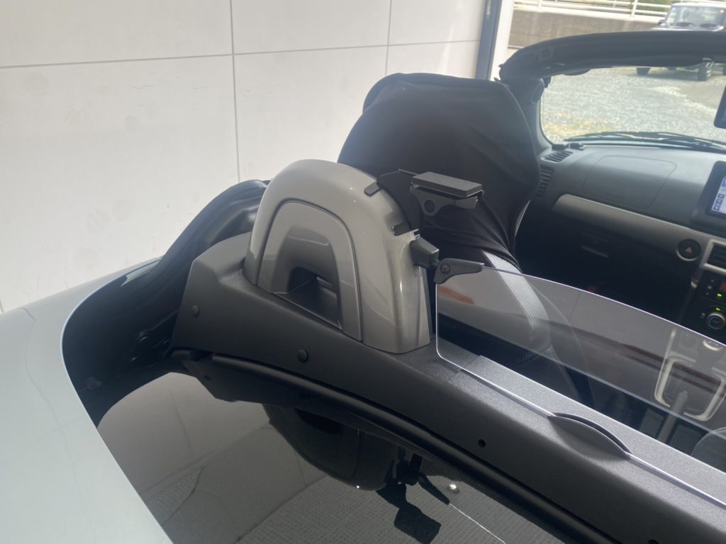 リアカメラの取付はビートソニック製BBA05コペン専用ステーをご用意しました。
