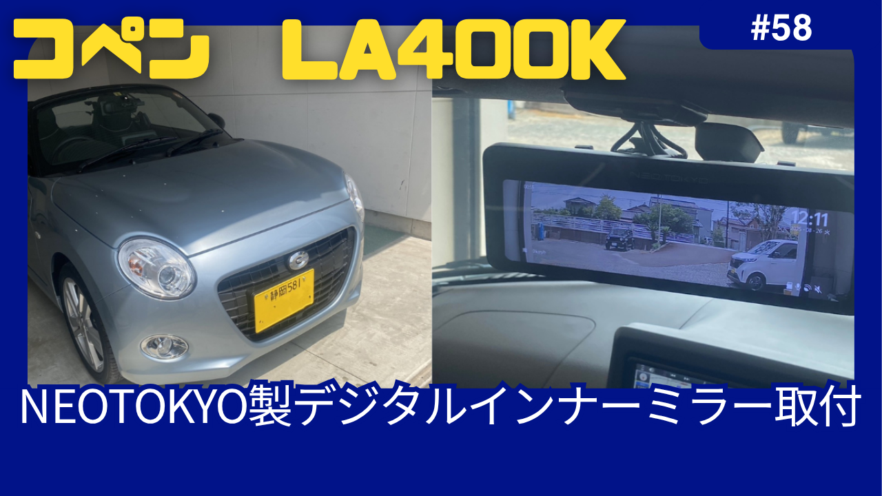 今回はダイハツコペン(LA400K)に持込品のNEOTOKYO製ミラーカム3 MRC-2024Gを取付します。