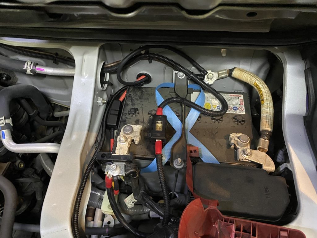 バッテリーがフロントボンネット内のエンジンルームにある車両は、配線がうまく通らない可能性があるため施工不可となります。