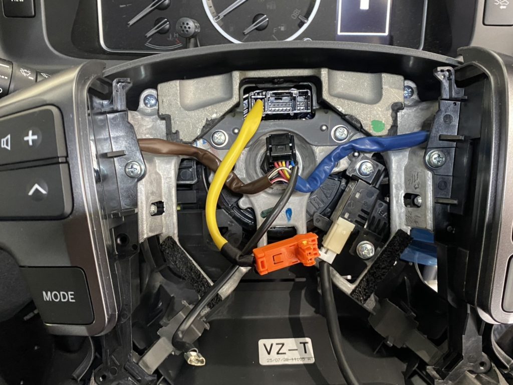ステアリングエアバックを外して、クルーズコントロールスイッチと配線を接続します!