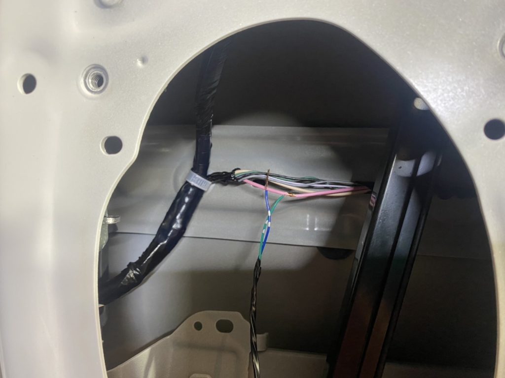ドアスピーカーを取り外すと、ドアロック&アンロック線がありますので、ハンダにてしっかりと結線します!